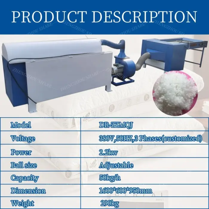The Easy to Operate Fiber Ball Machine is designed for efficiently opening and processing pearl cotton to create polyester balls for various applications like pillows, toys, and cushions.