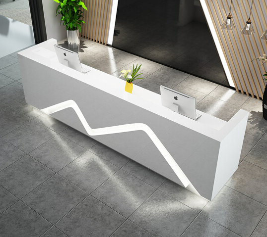 The counter can be fitted with integrated, energy-efficient LED lighting. Options typically include different color temperatures and mounting/placement choices. Dimming or smart-control compatibility should be specified when ordering.