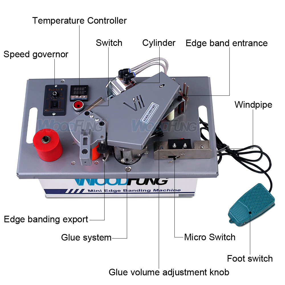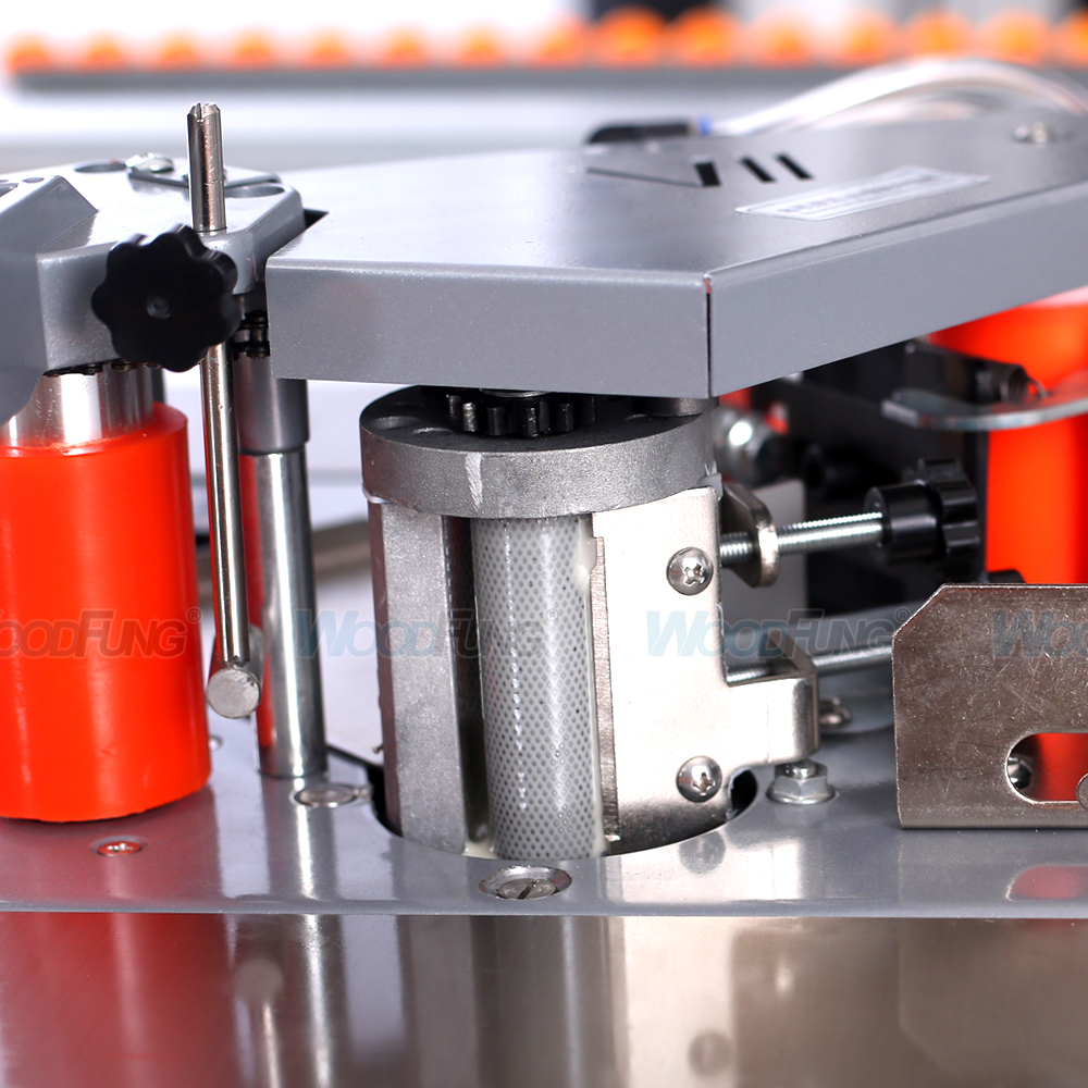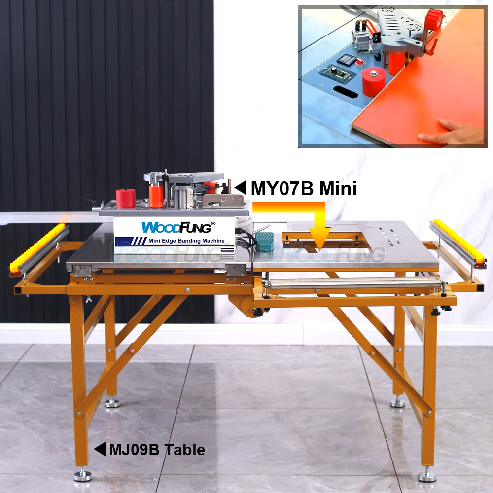 The MJ09BG edge bending machine can process various materials including density boards, shaving boards, wood-based panels, ABS panels, PVC panels, organic glass plates, and solid wood.