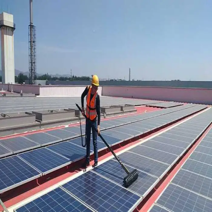 The Eitai Extension Water Feeder Brush is a solar-powered cleaning machine designed specifically for maintaining the cleanliness and efficiency of solar panels.