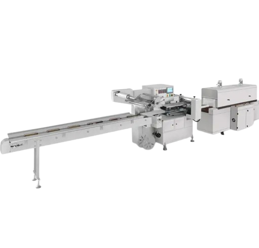 The machine can package a variety of items including food, beverages, cans, textiles, and other commodities.
