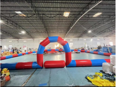 The Electric Bumper Car set includes 6 bumper cars and an inflatable border that measures 8x8 meters.