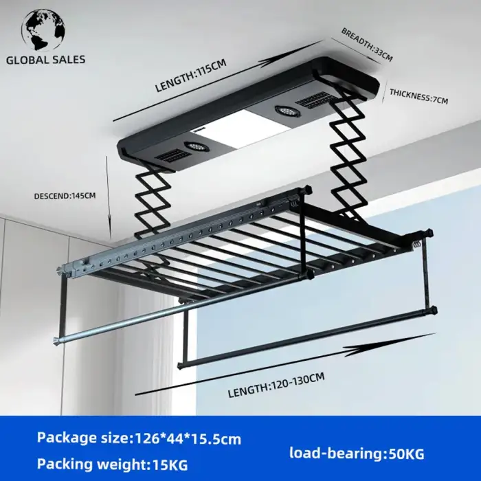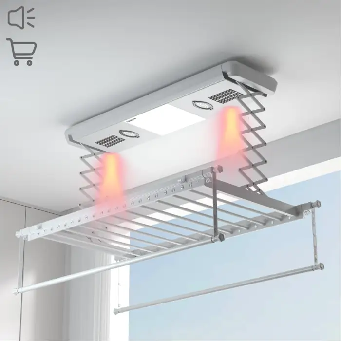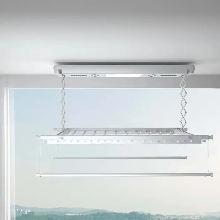 You can control the Electric Clothes Rack using either the wireless remote control or by voice command.