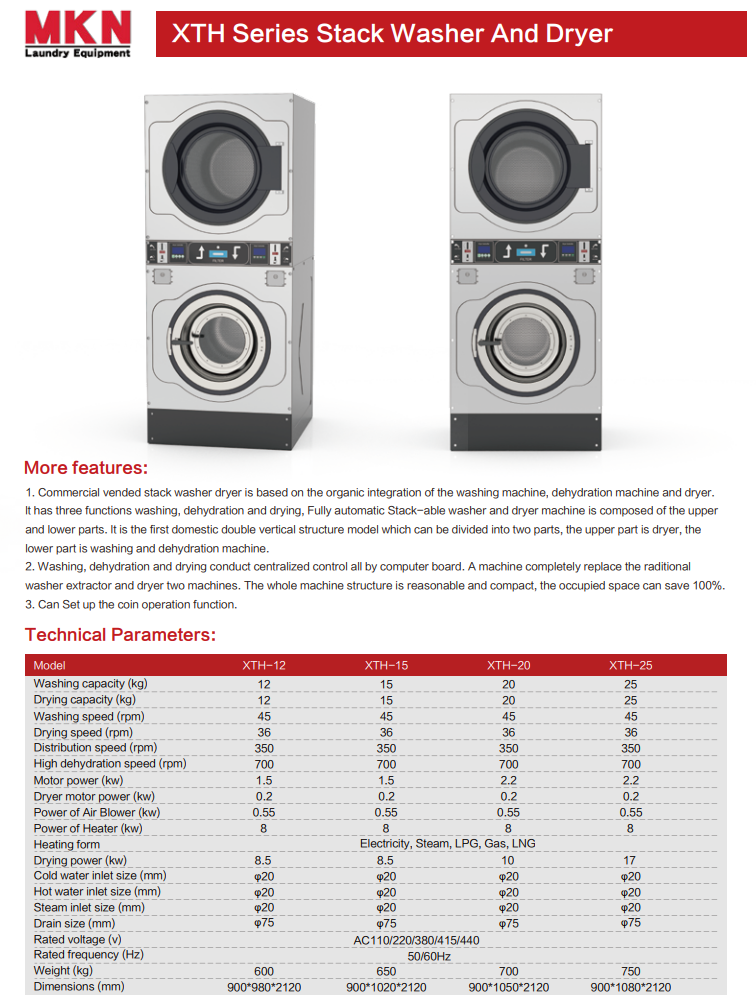 Electric Coin Operated Stack Dryer and Washing Machine - Model: XTH-15