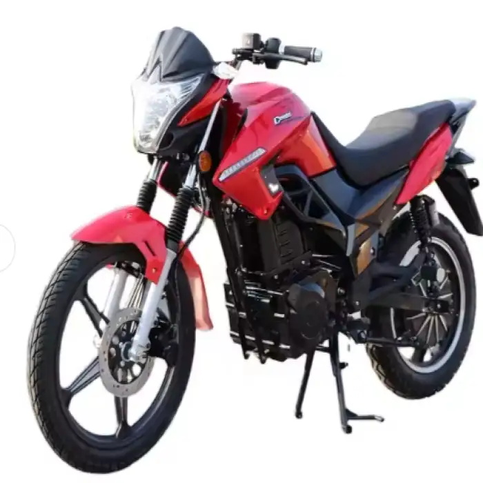 The motorbike is equipped with disc brakes for reliable stopping power and safety.