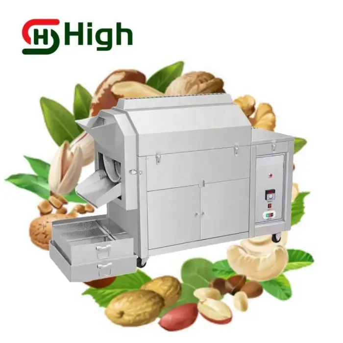 This machine is designed to roast cashews, walnuts, coffee beans, and melon seeds.