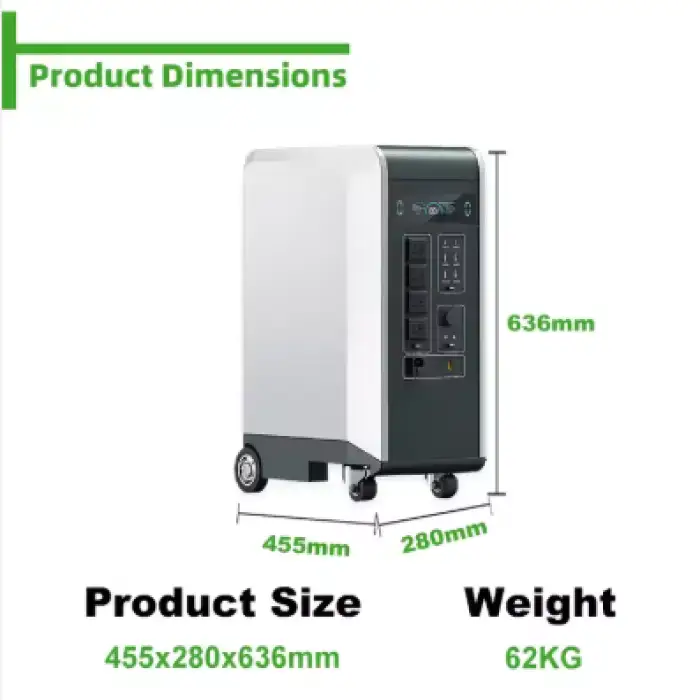 The dimensions of the EnergyCreative Portable Power Station are 455mm (W) x 280mm (D) x 636mm (H).