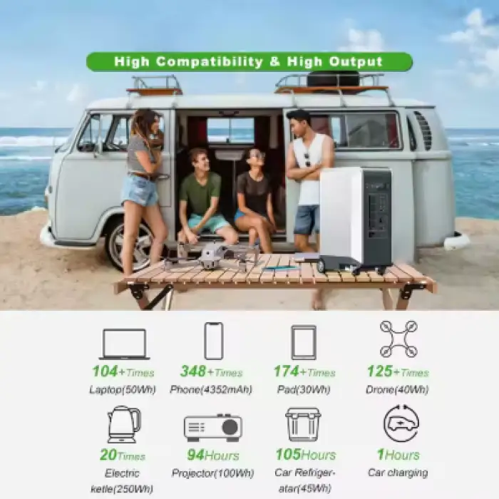The power station uses a pure sine wave inverter, which is safe for sensitive electronics.