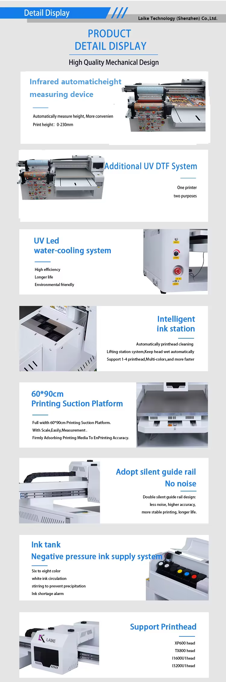 The printer features a UV LED water cooling system to help maintain optimal operating temperatures during printing.