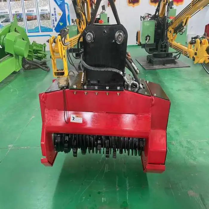 The hydraulic system provides efficient cutting power, enabling the mulcher to perform heavy-duty tasks effectively.