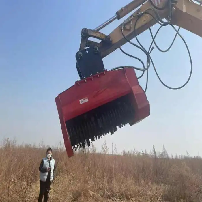 This mulcher features a powerful hydraulic system, a lightweight design, and a high number of blades, making it highly efficient for heavy-duty applications.