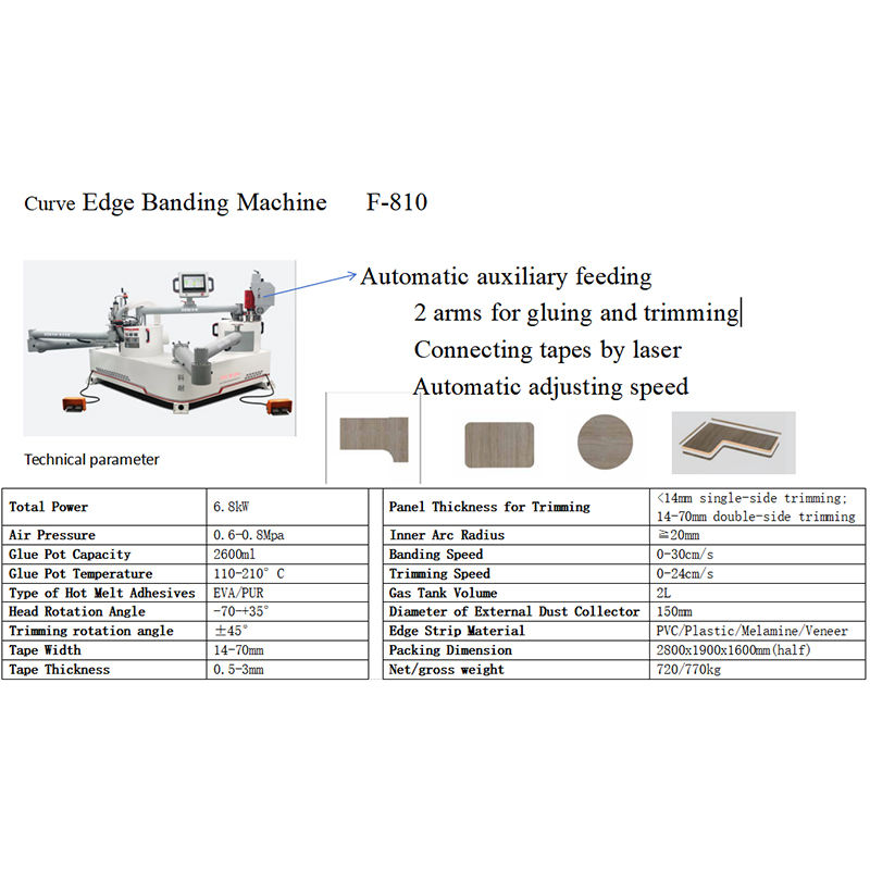F-810 Automatic PVC Curve Edge Sealing Machine Woodworking Furniture Double Folding Arms for Wood Based Panels Machinery