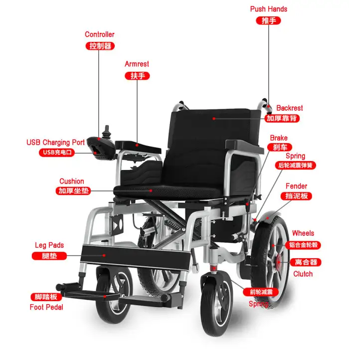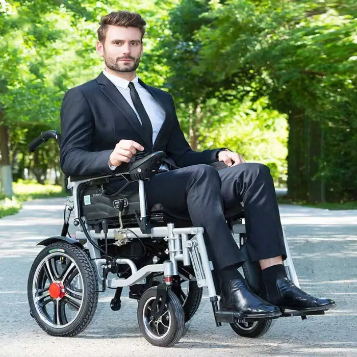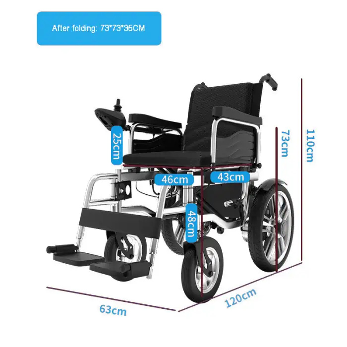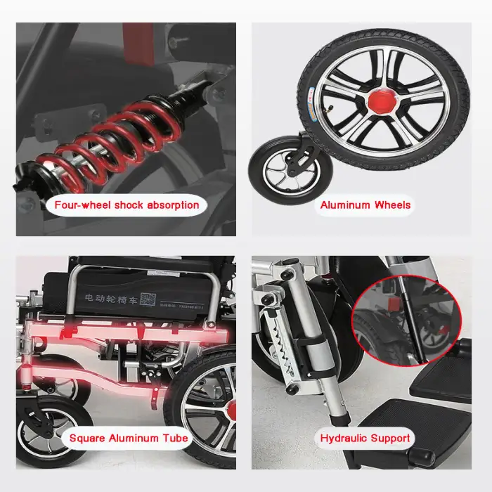 The FarmaSino Aluminum Folding Electric Wheelchair has a weight capacity of up to 300 pounds.