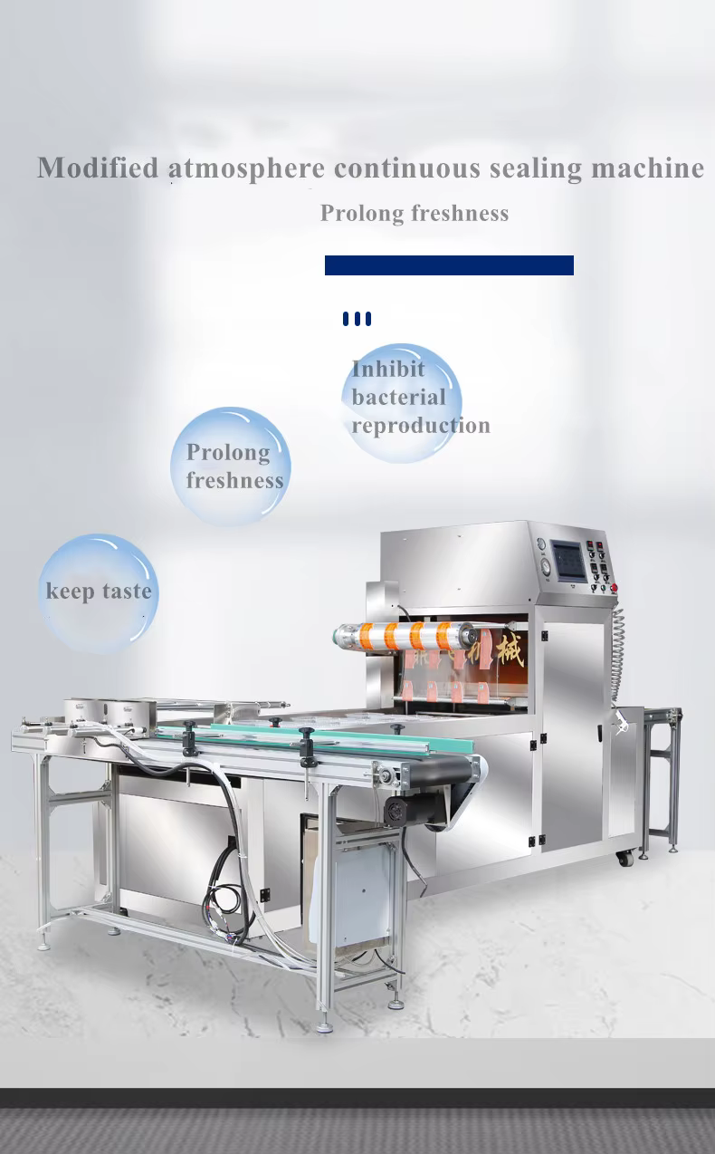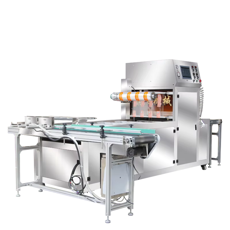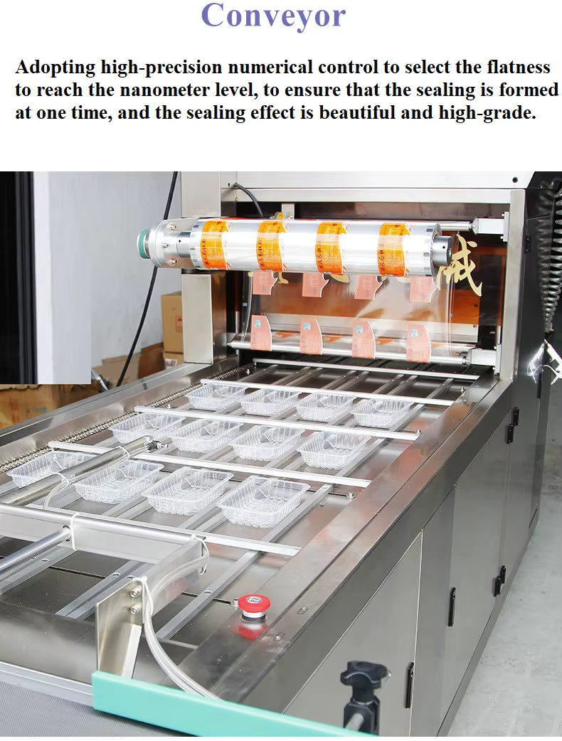 This machine is designed to seal a variety of food trays, including plastic and composite material trays.