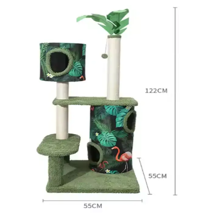 The dimensions of the cat tree are 55 cm x 55 cm x 122 cm.