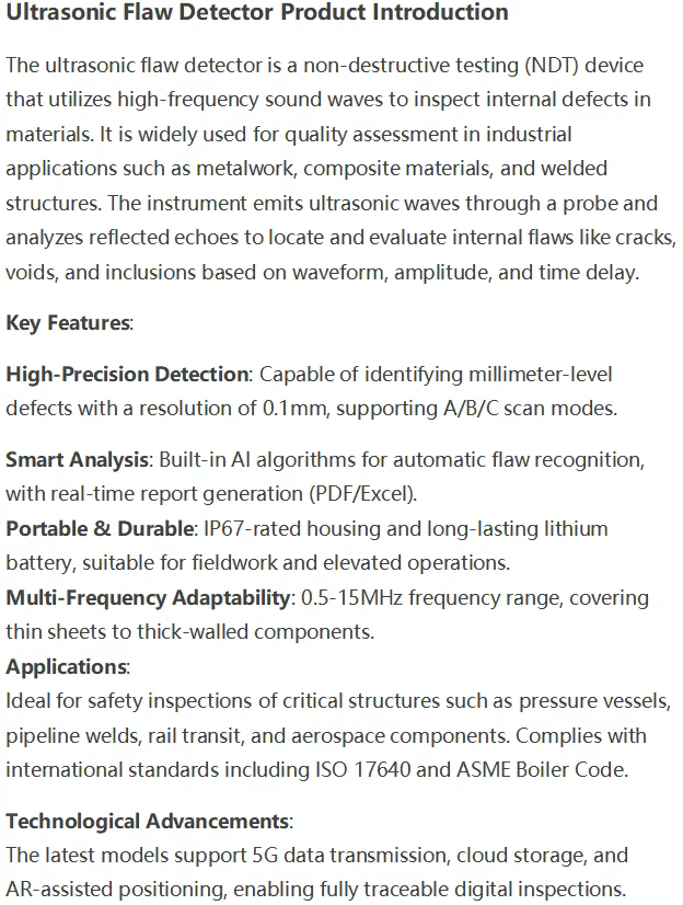 Its advanced technology, accuracy, user-friendly design, and multi-functionality make it a high-quality tool for flaw detection.