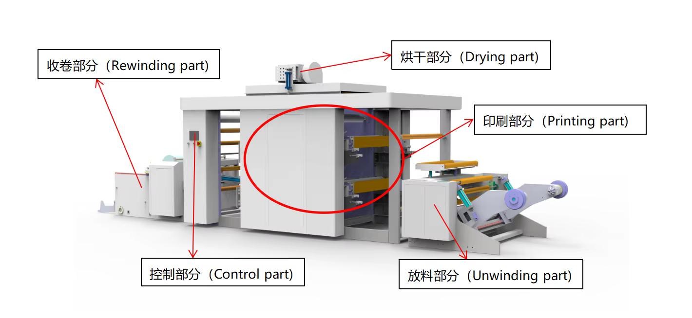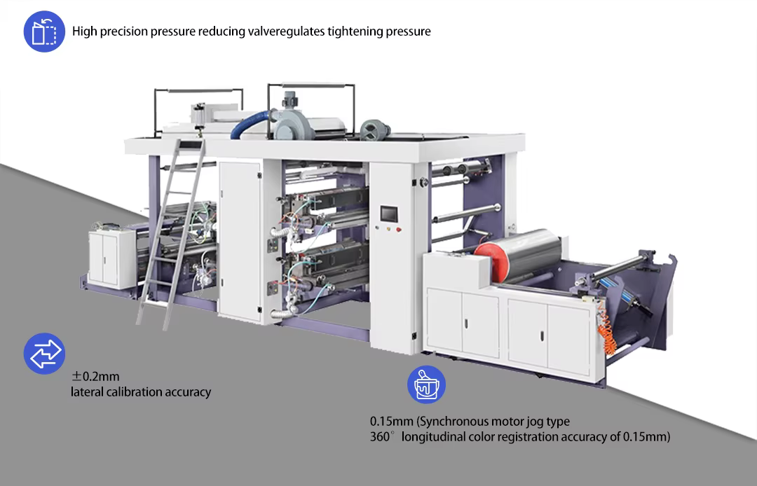This flexo printing machine is designed for printing on various materials, including paper bags.