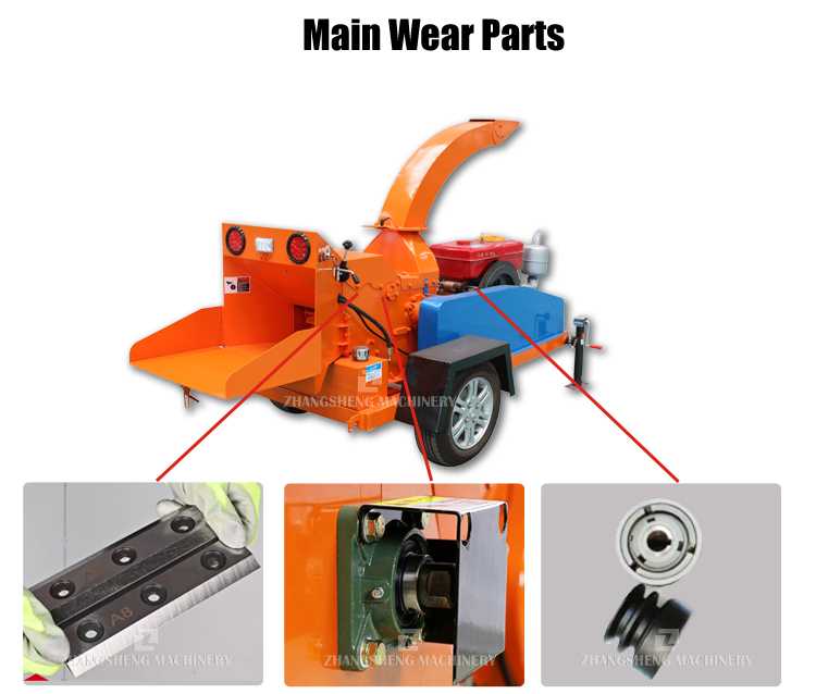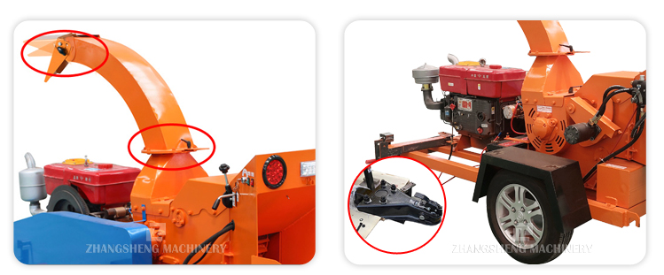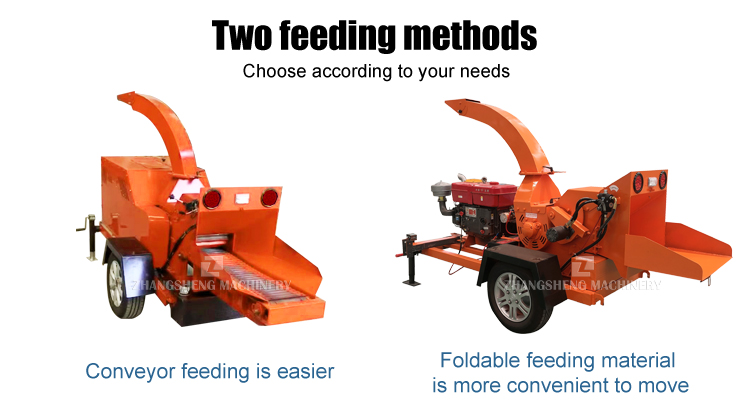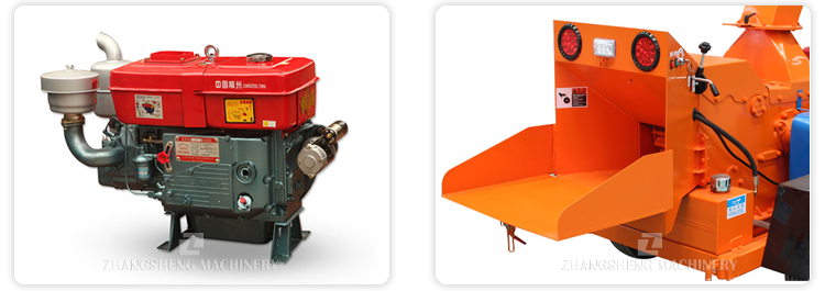This is a forestry mobile diesel engine wood chipper/shredder designed to crush branches, small logs and woody waste into chips suitable for mulch, ground cover, organic fertilizer feedstock, composting or biomass fuel.