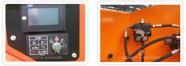 Key safety features include a front pressing roller to prevent backflow of material, hydraulic forced feeding to stabilize input, a clutch that slips if transmission load is excessive to protect the engine, and optional intelligent panel alarms for abnormal oil level, water temperature or other faults.