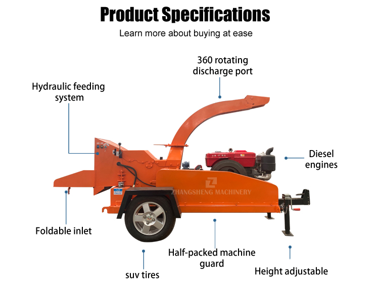 Forestry Mobile Diesel Engine Wood chipper shredder Branch Wood Chip Crusher Machine