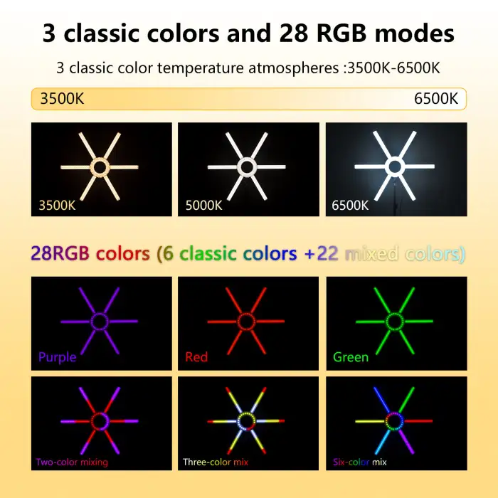 The studio light is equipped with 168 RGB LEDs, providing vibrant color effects.