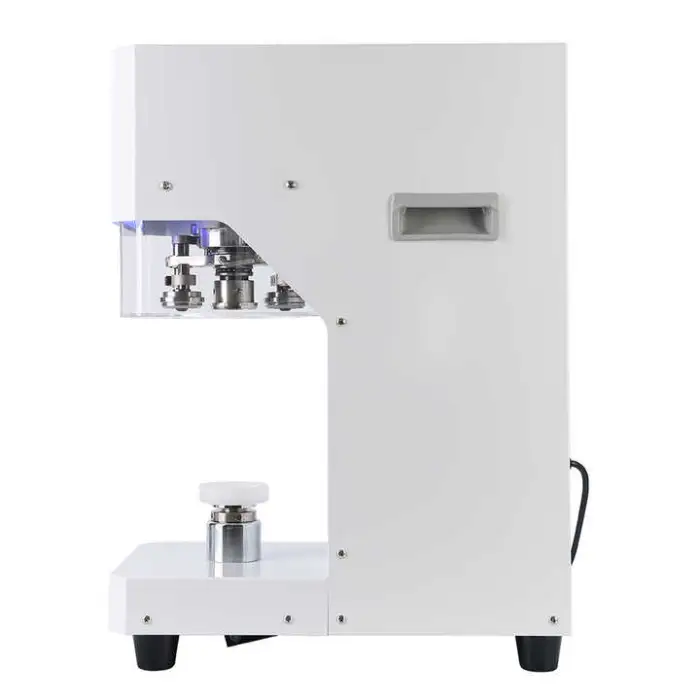 The machine can seal cans made from plastic PET, tin, and other materials suitable for beverage and food packaging.