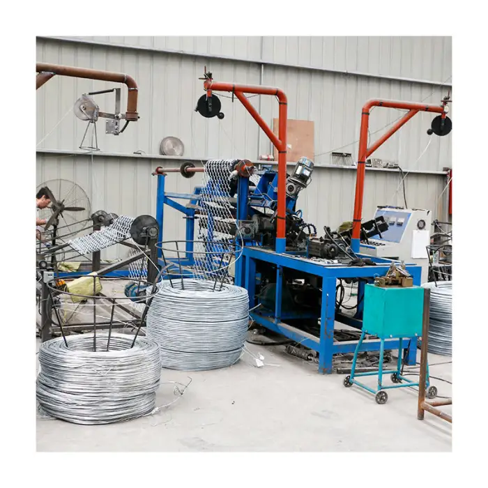 The machine is designed to work with various types of wire suitable for chain link fencing, typically made of galvanized steel.