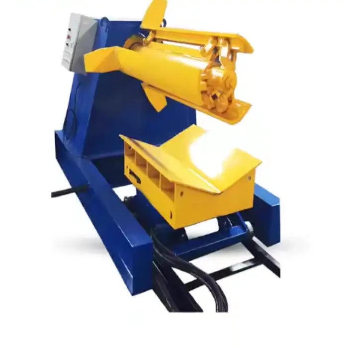 The decoiler machine efficiently uncoils steel, making the handling of raw materials smoother for production lines.