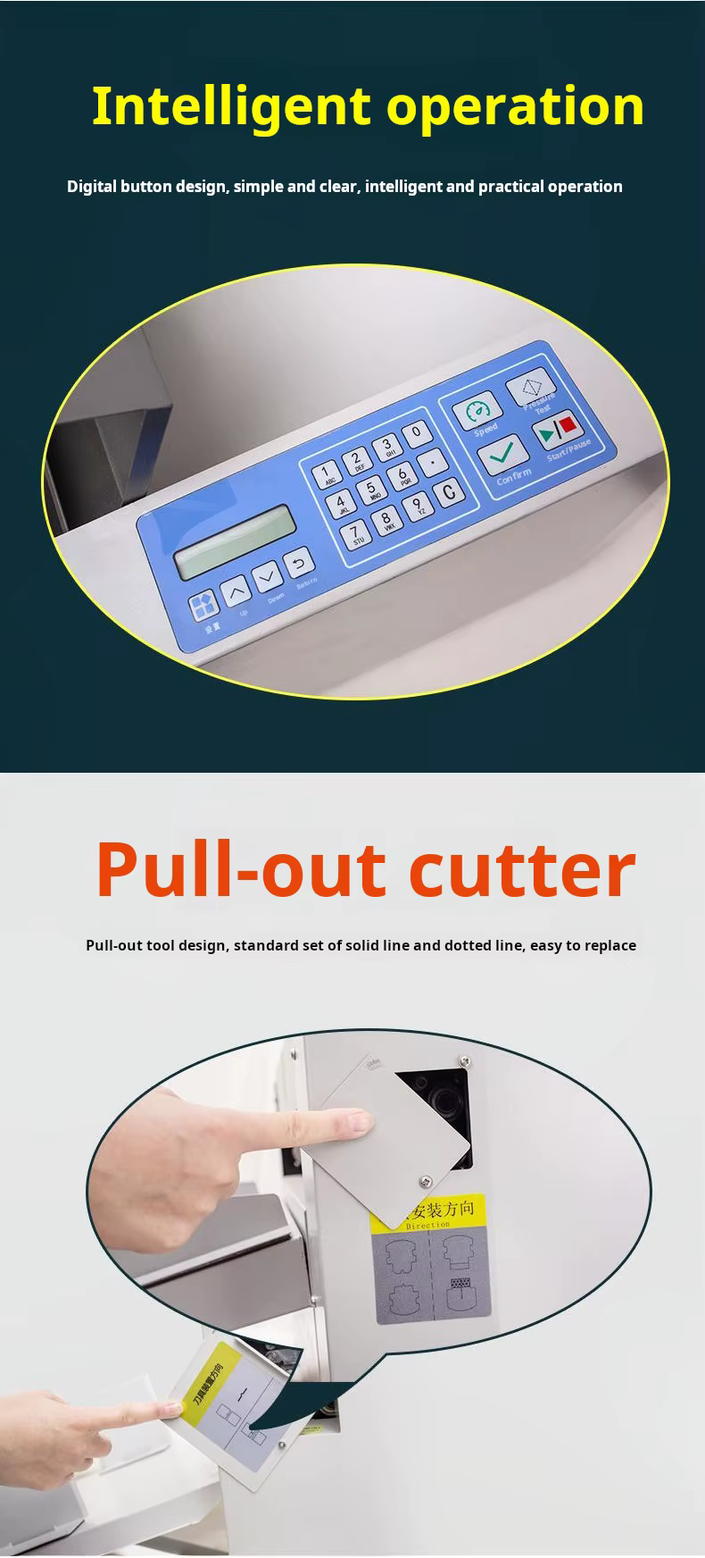 The Fully Automatic Digital Electric Creasing Machine can perform solid line, dotted line, and micro line creasing, making it versatile for various paper folding and scoring needs.