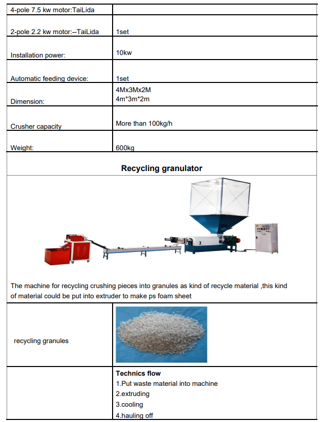 The recycling machine with a crusher is designed to process waste materials and convert them back into usable PS foam sheets.
