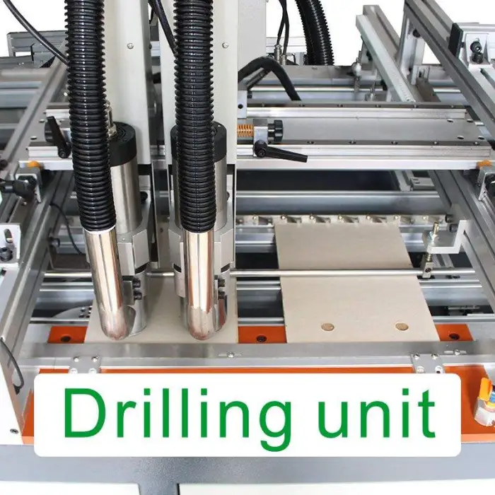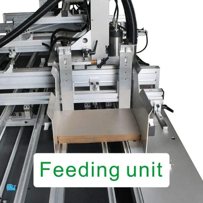 The machine is equipped with various safety features, including emergency stop buttons and protective covers to ensure safe operation.
