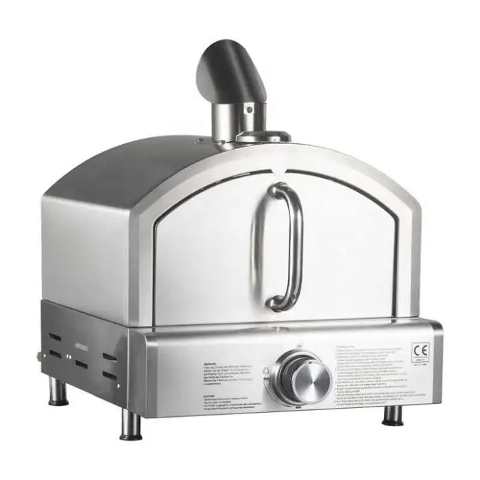 This pizza oven is made from high-quality stainless steel, ensuring durability and a stylish appearance.