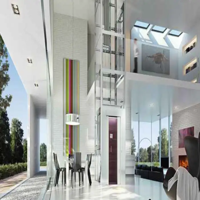 The elevator is constructed from high-quality stainless steel, ensuring durability and a modern aesthetic that complements contemporary homes.