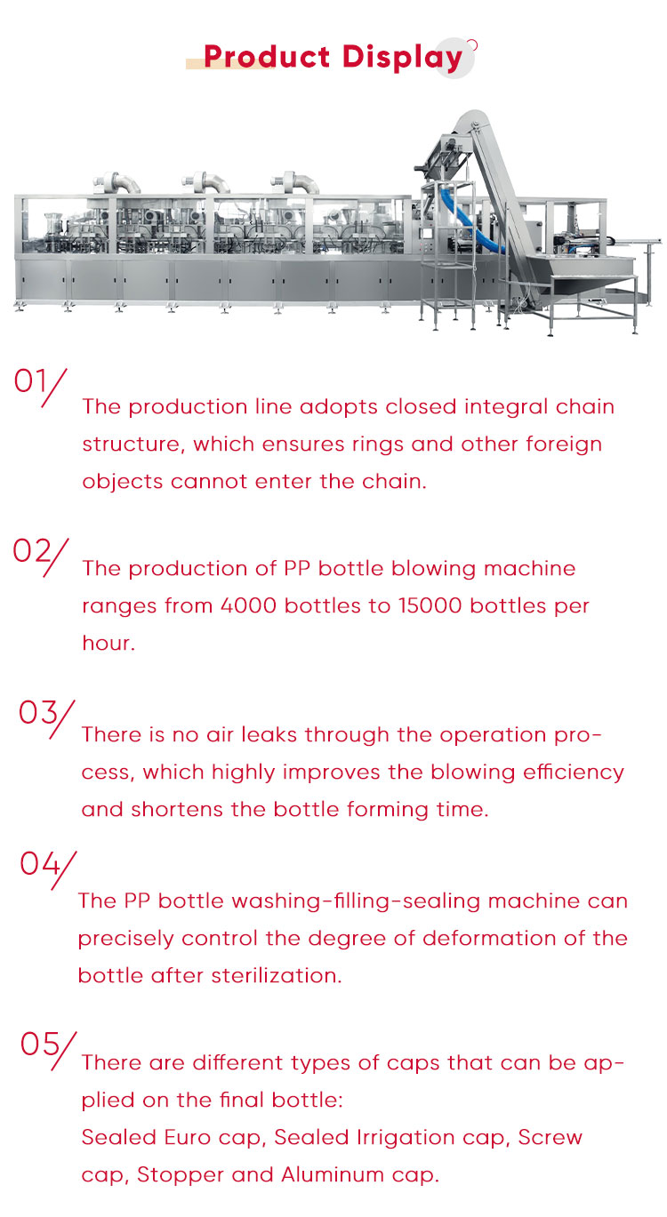 The machine is capable of filling a wide range of liquid products, with filling volumes ranging from 50 ml to 5000 ml.