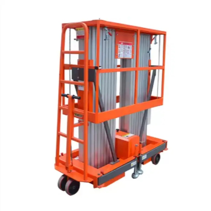 The man lift is constructed from high strength aluminum alloy, making it both lightweight and durable.
