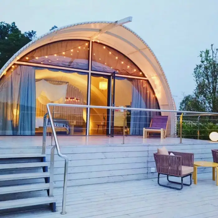 This tent is ideal for camping trips, glamping experiences, outdoor events, and can even serve as a unique hotel room alternative.