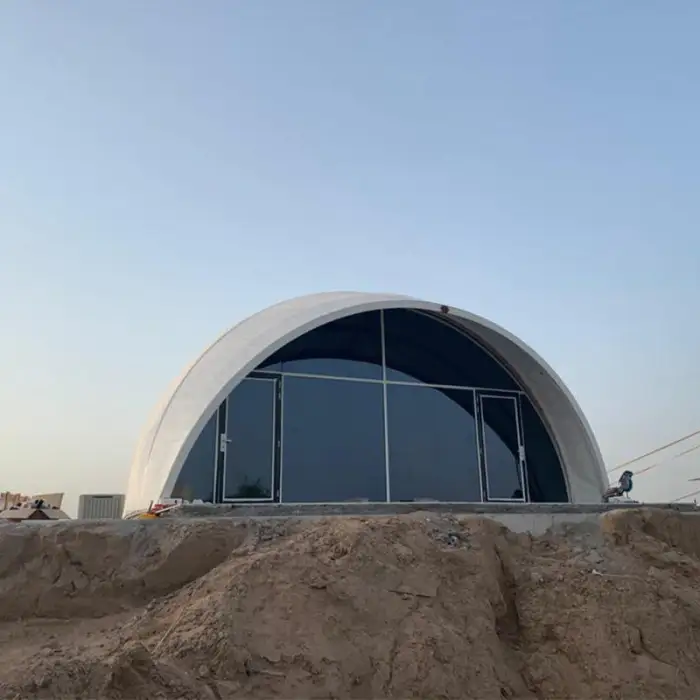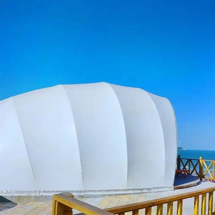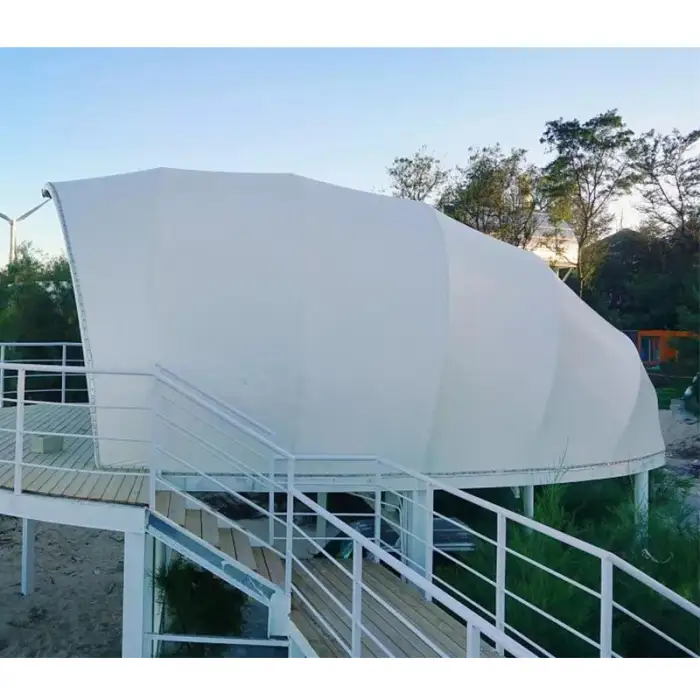 The tent is made from high-quality white PVDF architectural membrane material, ensuring durability and weather resistance.