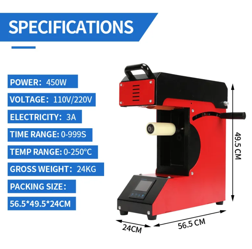 The heat transfer machine uses a manual drive type, allowing for greater control during the pressing process.