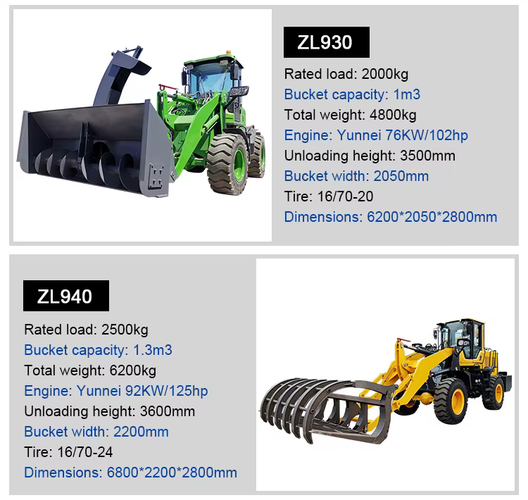 The bucket capacity of the loader ranges from 0.38 to 1.5 cubic meters.