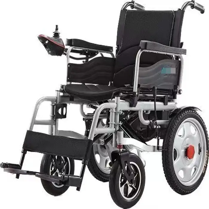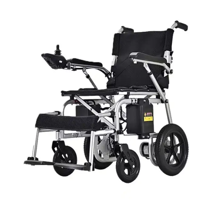 The wheelchair is designed to be lightweight and foldable, making it easy to transport and store.