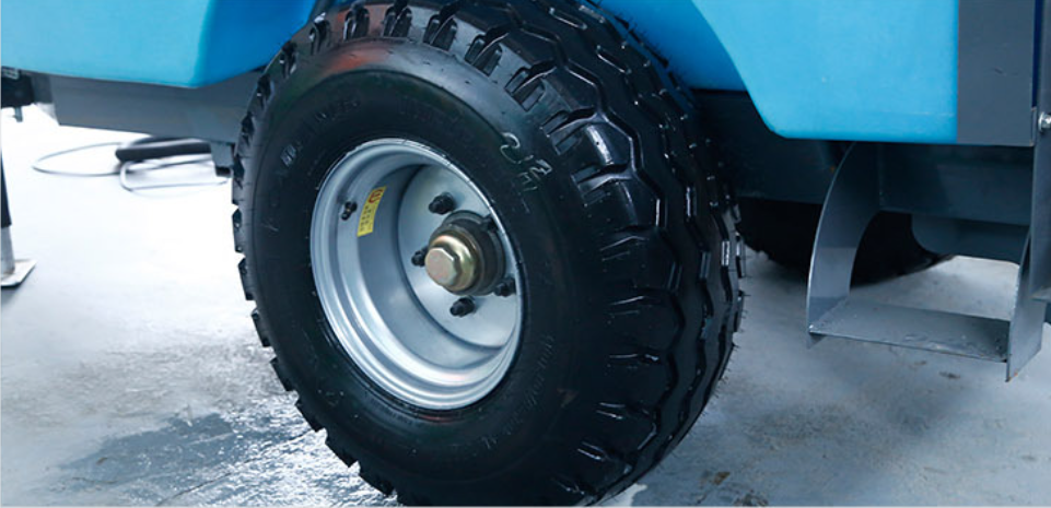 It uses heavy-duty widened vacuum rubber tires that are slip- and wear-resistant, providing good stability and traction during field operations.