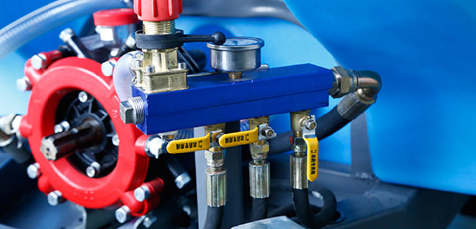 It uses a triple (3-cylinder) plunger pump with flow about 100–120 L/min. Pump pressure is specified up to 0–4 MPa in some references; typical operating work pressure range is 0.3–2.5 MPa for normal spraying.