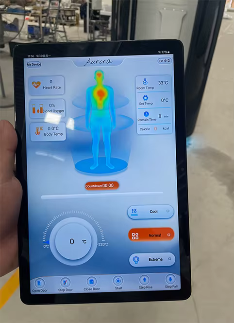 The remote control allows you to easily operate and customize the settings of the cryotherapy chamber from a distance, making it convenient to use.