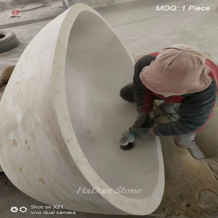 Home Indoor Modern Design Freestanding Hand Carved Bath Tub Beige Marble Stone Bathtub Natural Marble Bathtub