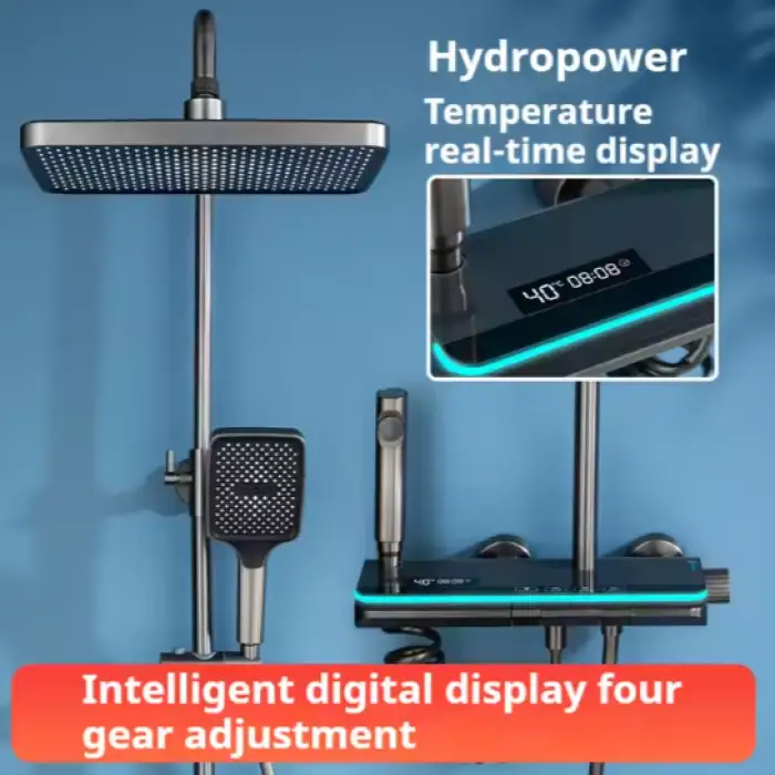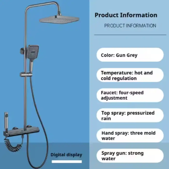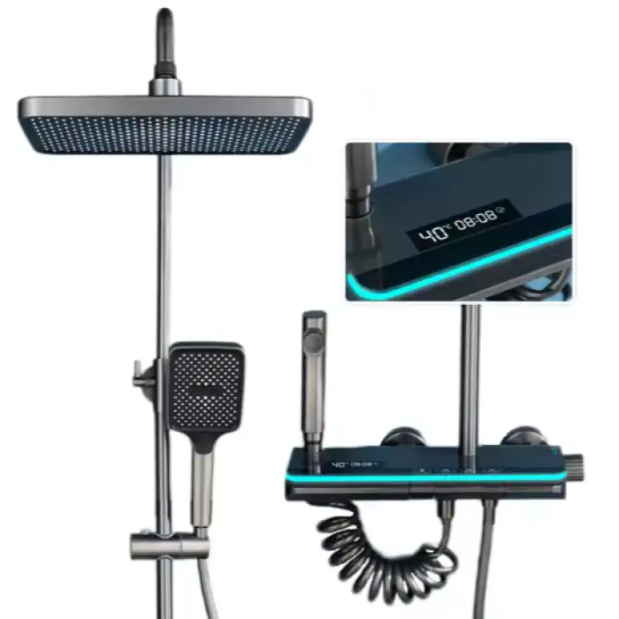 The shower system is made of high-quality brass and stainless steel, ensuring durability and longevity.