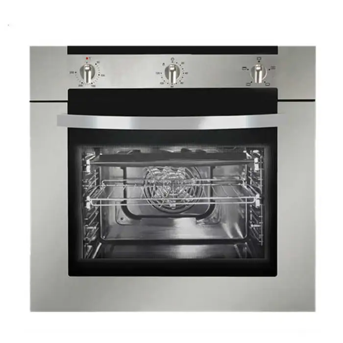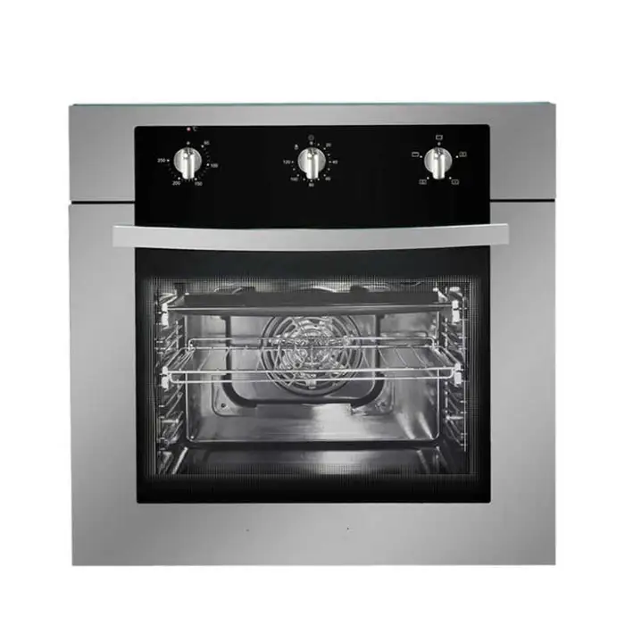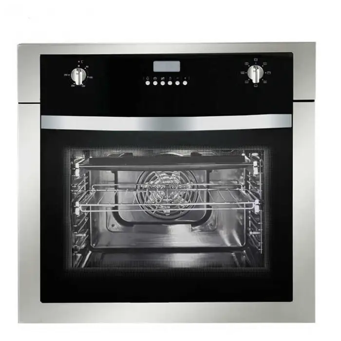 The oven is constructed from high-quality stainless steel, ensuring durability and a sleek design.