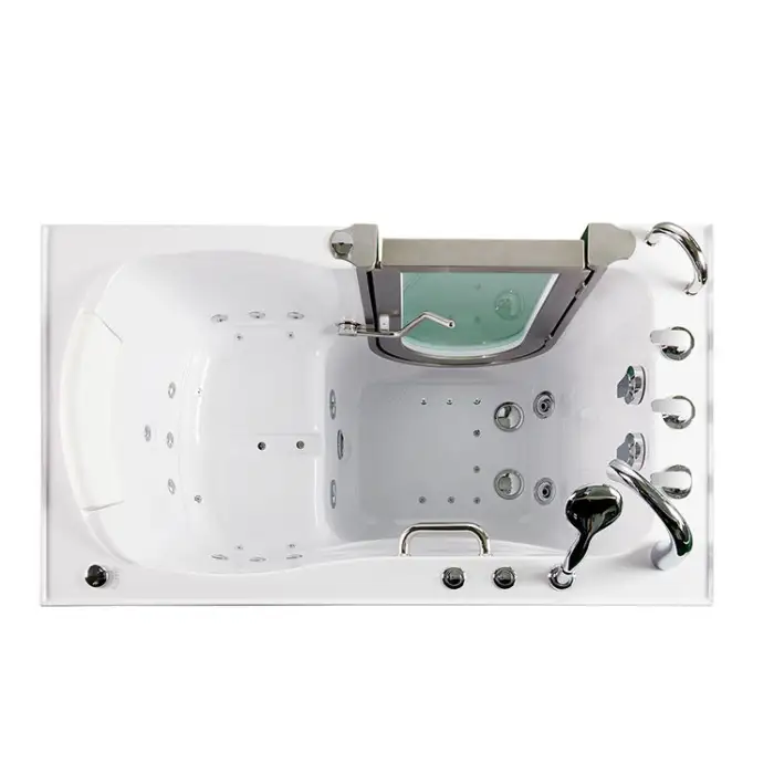 The bathtub comes with a multifunction shower head that allows for a variety of water experiences.