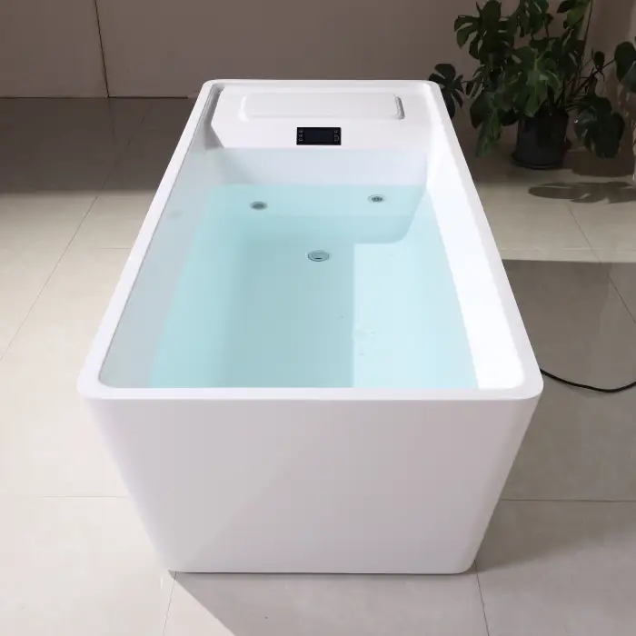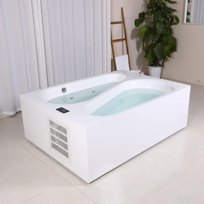 The tub features computer-controlled settings for precise temperature adjustments, allowing you to customize your cold plunge experience.
