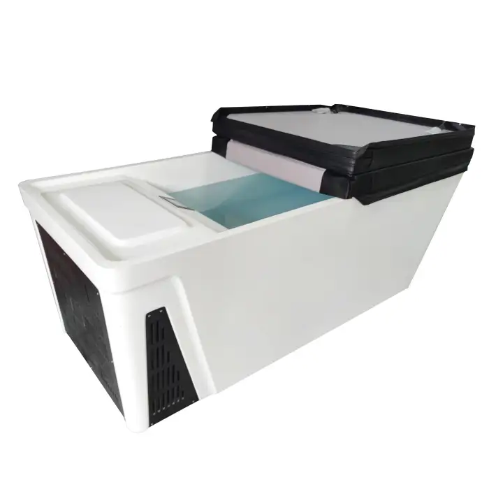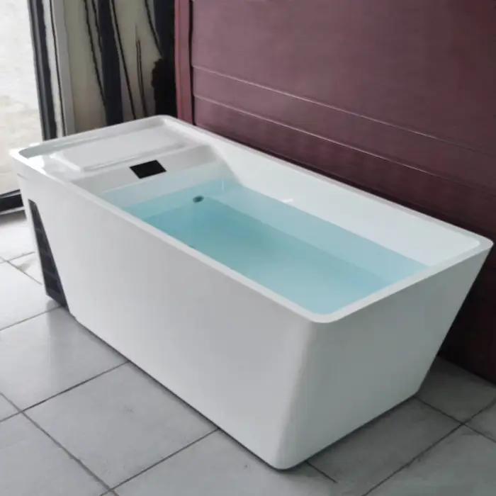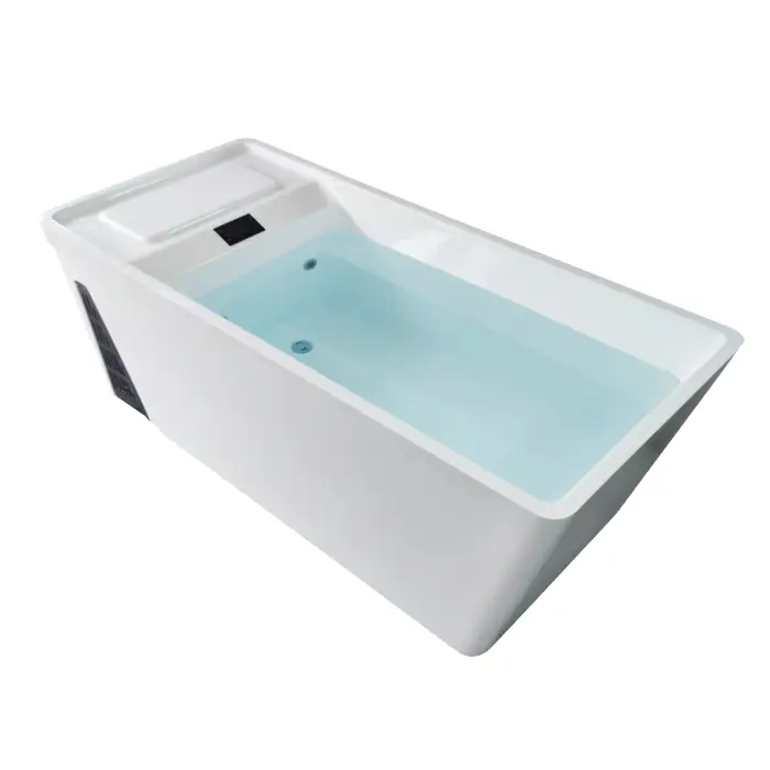 The Ice Bath Recovery tub is designed in a rectangular shape, providing ample space for body soaking.