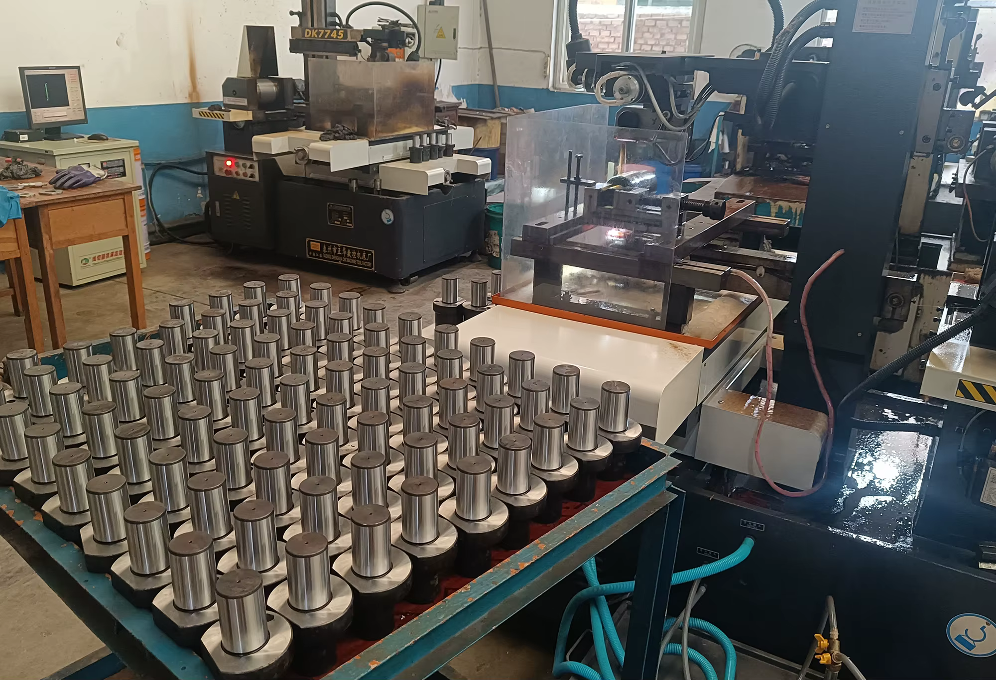 The equipment includes a Kunlun on-state HD LCD screen control cabinet, which allows for clear monitoring of the machining process.